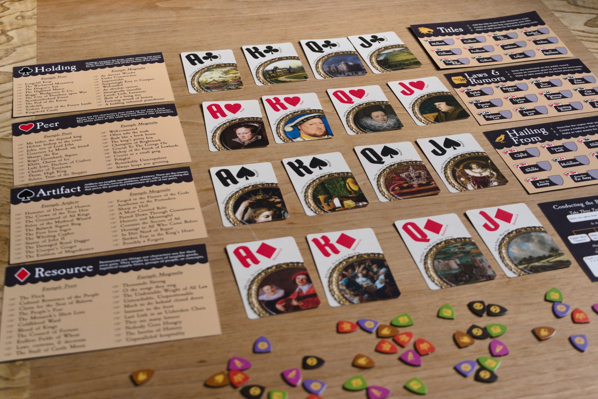 Uneasy Lies the Head is royal court intrigue in the form of a tabletop roleplaying game for 2-5 players. The game is at its best as a short campaign of two to four sessions. You can also shorten it into a one-shot or string together multiple games as a longer campaign. There is no game master, so each player will: